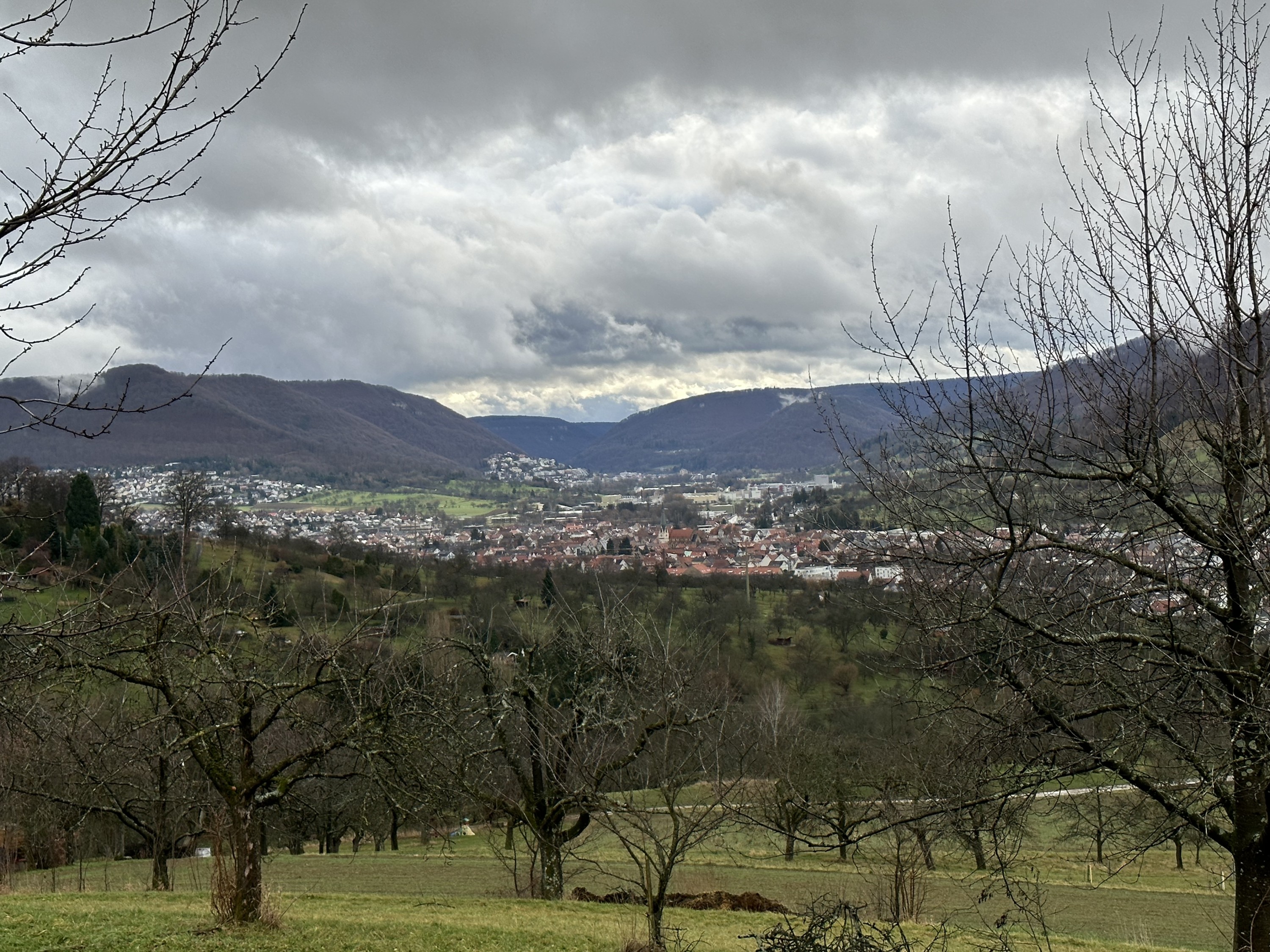 Der Blick bei trübem Wetter von der Kappishäusener Kuppe auf das Ermstal.Bei Nacht sieht dss richtig cool aus