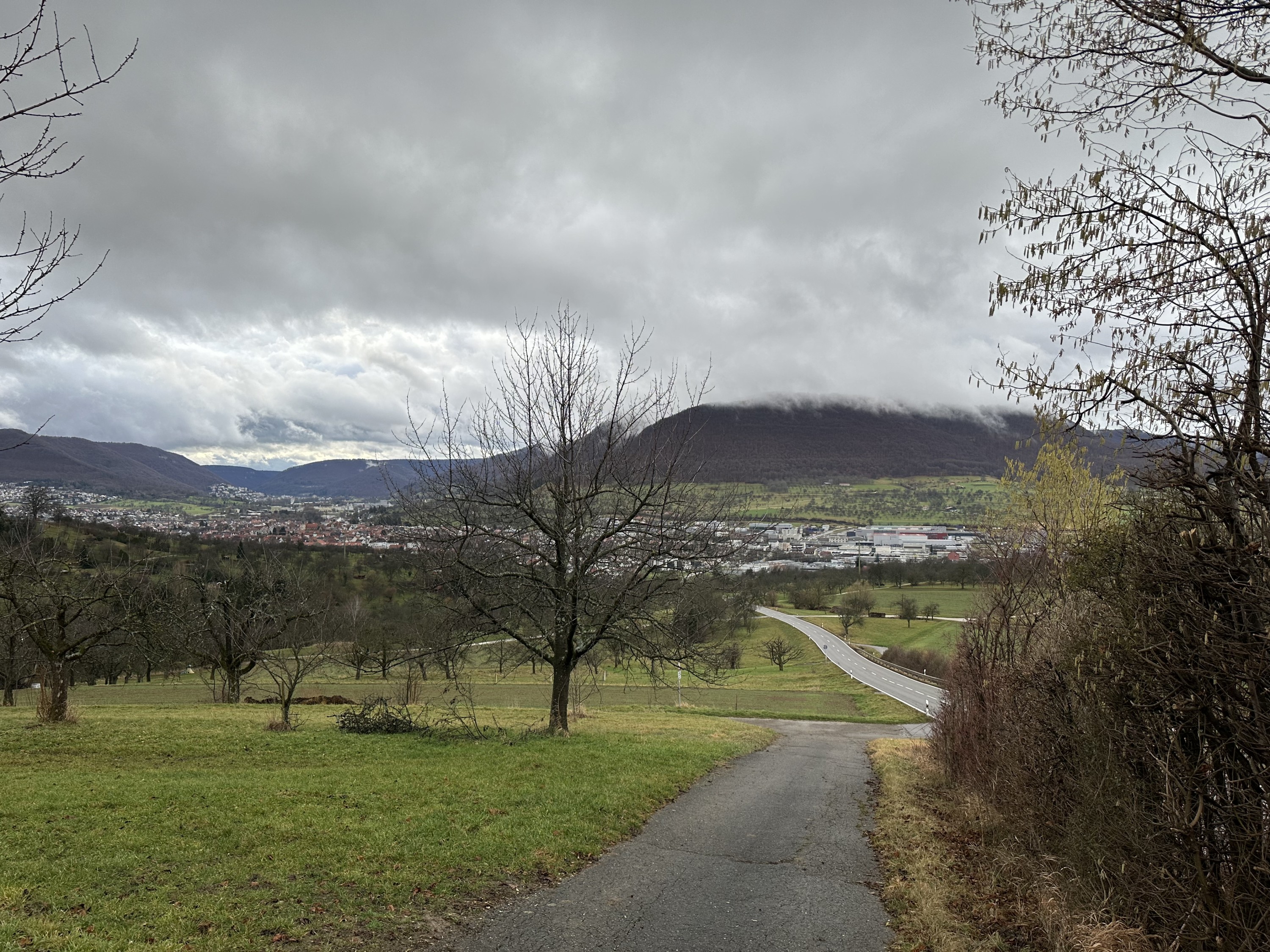 Der Blick bei trübem Wetter von der Kappishäusener Kuppe auf das Ermstal.Bei Nacht sieht dss richtig cool aus