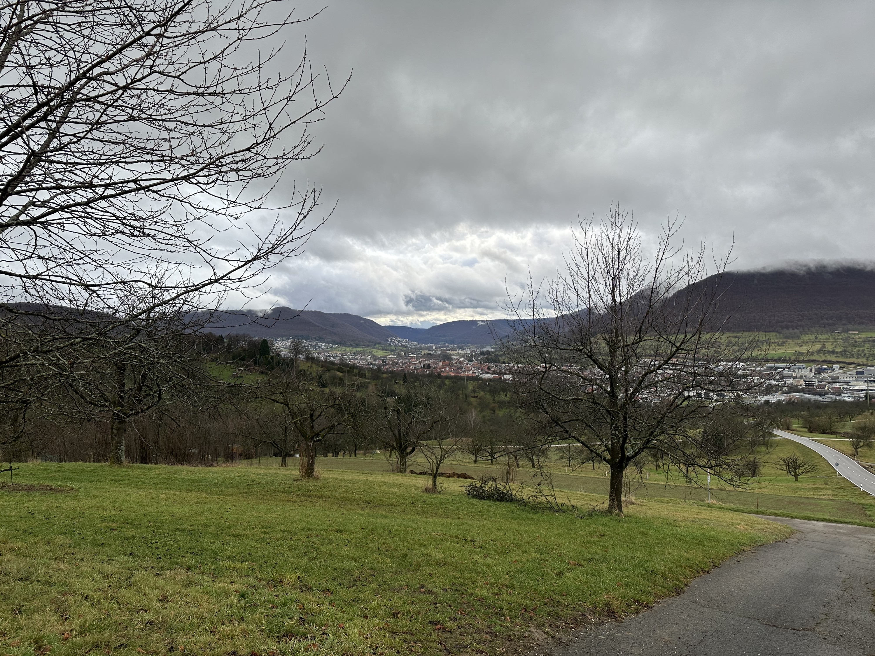 Der Blick bei trübem Wetter von der Kappishäusener Kuppe auf das Ermstal.Bei Nacht sieht dss richtig cool aus