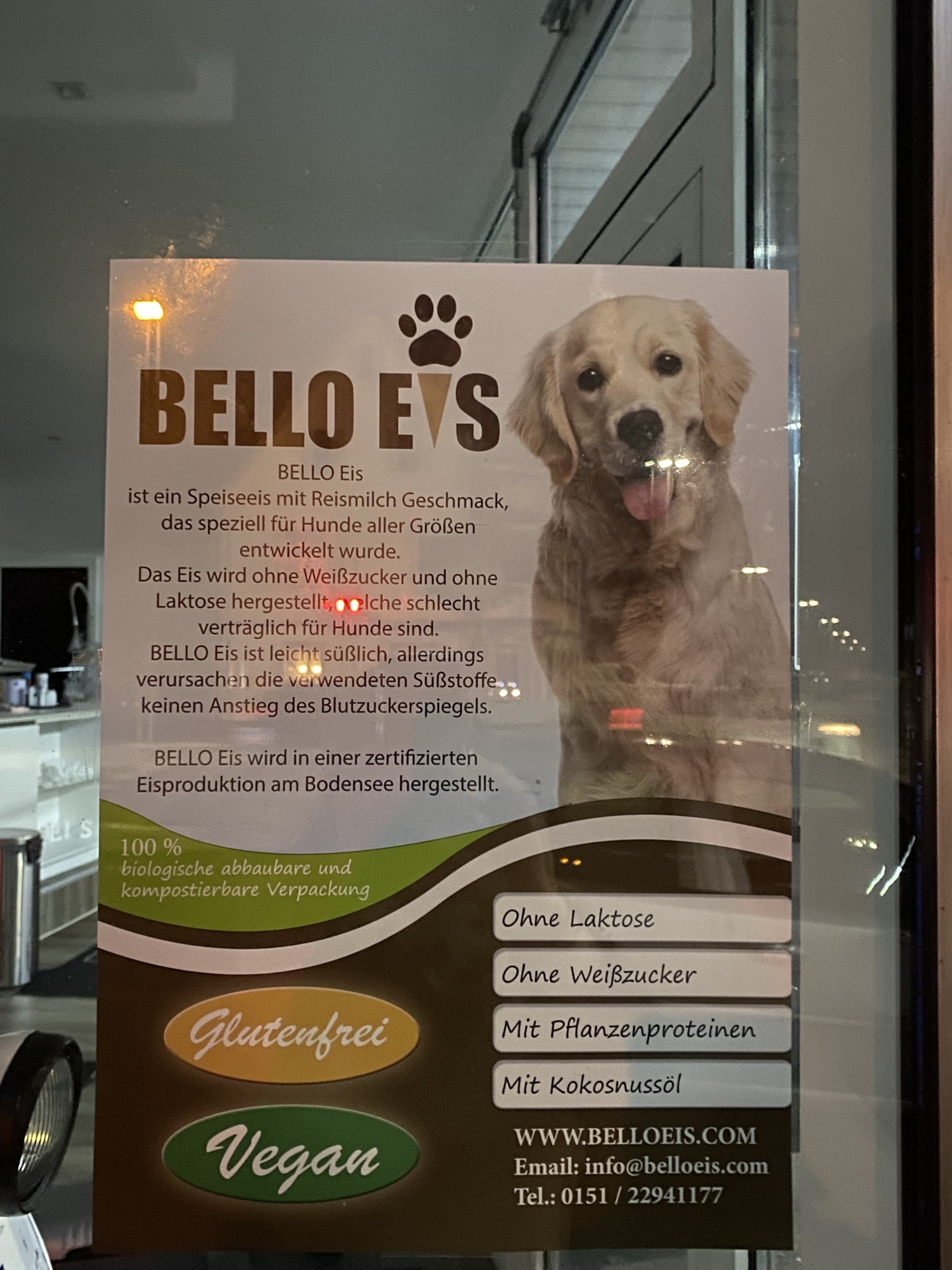 In Bad Urach bei der Eisdiele "Gelateria Tre" habe ich dieses lustige Plakat entdeckt. Ich wusste gar nicht, dass es Eiscreme für Hunde gibt. Das ist eigentlich eine ganz tolle Idee für die Vierbeiner im Sommer bei warmen Wetter.